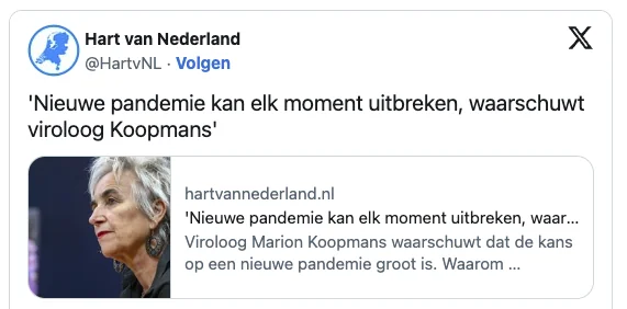 “Het is duidelijk dat er lessen te leren zijn, maar ik maak me zorgen dat we die lessen niet snel genoeg in de praktijk brengen,” voegt Koopmans toe. Ze heeft ook kritiek op plannen van minister Fleur Agema om 300 miljoen euro te bezuinigen op pandemische paraatheid. “Dat is ontzettend onverstandig. We kunnen het ons niet veroorloven om nu onze aandacht te laten verslappen.”